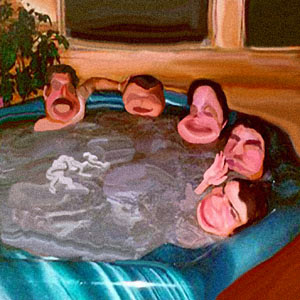 Here’s how it works: Five people get into my 400 gallon redwood hot